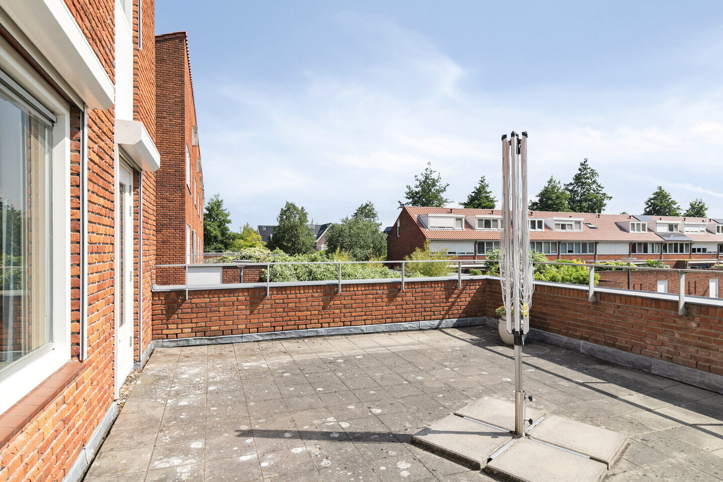 Aan de achterzijde van de woning bevindt zich een ruim dakterras, ideaal voor een moment van ontspanning in de zon. Zowel op deze verdieping als op de tweede verdieping zijn aan de achterzijde en voorzijde elektrich bedienbare rolluiken geplaatst.