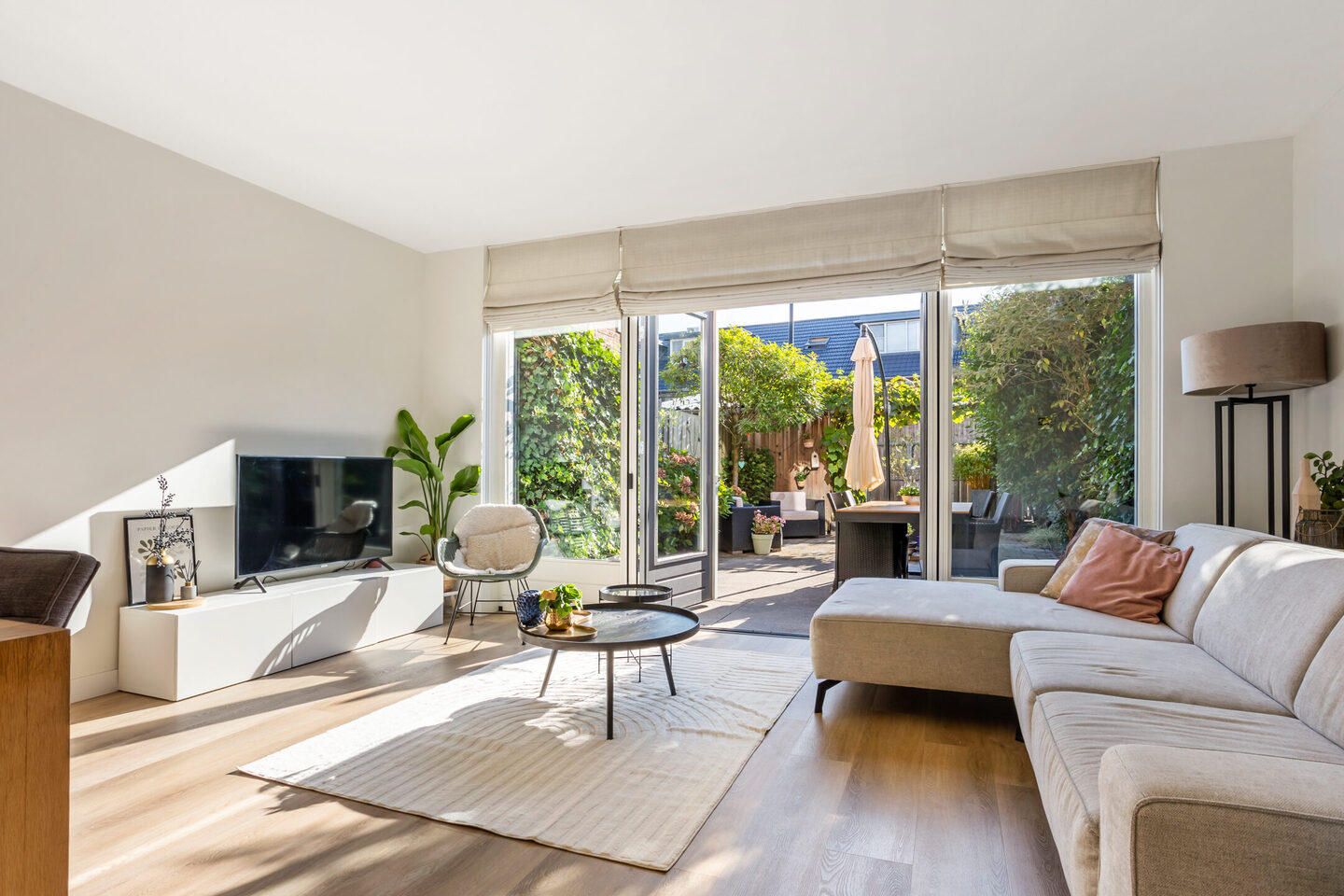 De keuken aan de voorzijde is uitgevoerd in een moderne stijl en uitgerust met diverse Siemans inbouwapparatuur, waaronder een koel-vriescombinatie (2020), een combi-oven (2023), inductiekookplaat, afzuigkap en vaatwasser. Dankzij de grote raampartij (voorzien van Venta raambekleding) geniet u hier van veel lichtinval en een prettig uitzicht op de straatzijde.
