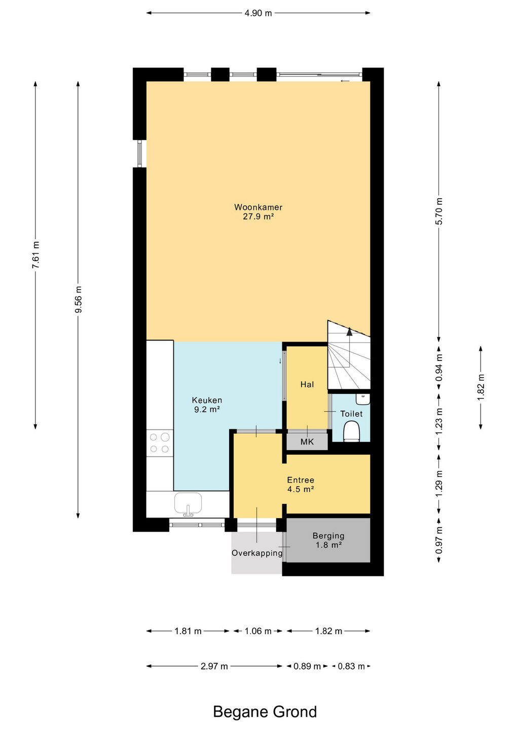 - Gedeelte van de berging is betrokken bij de woning waardoor er een ruime garderobe is ontstaan