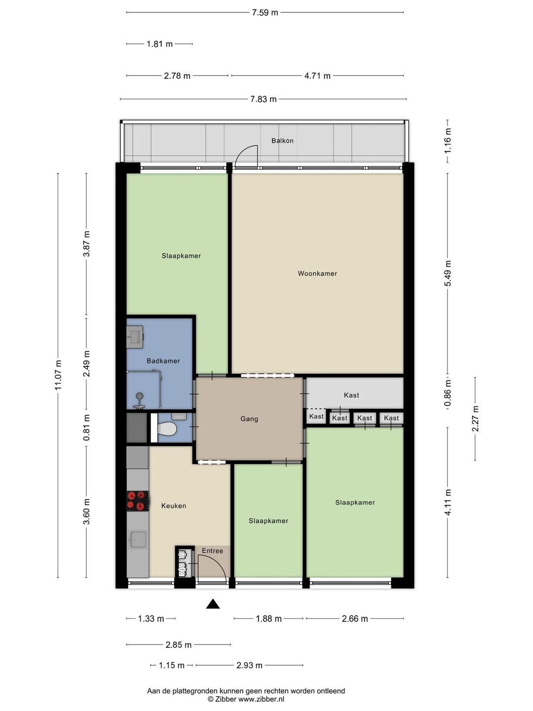 Zie de (interactieve) plattegronden voor de afmetingen van de woning.