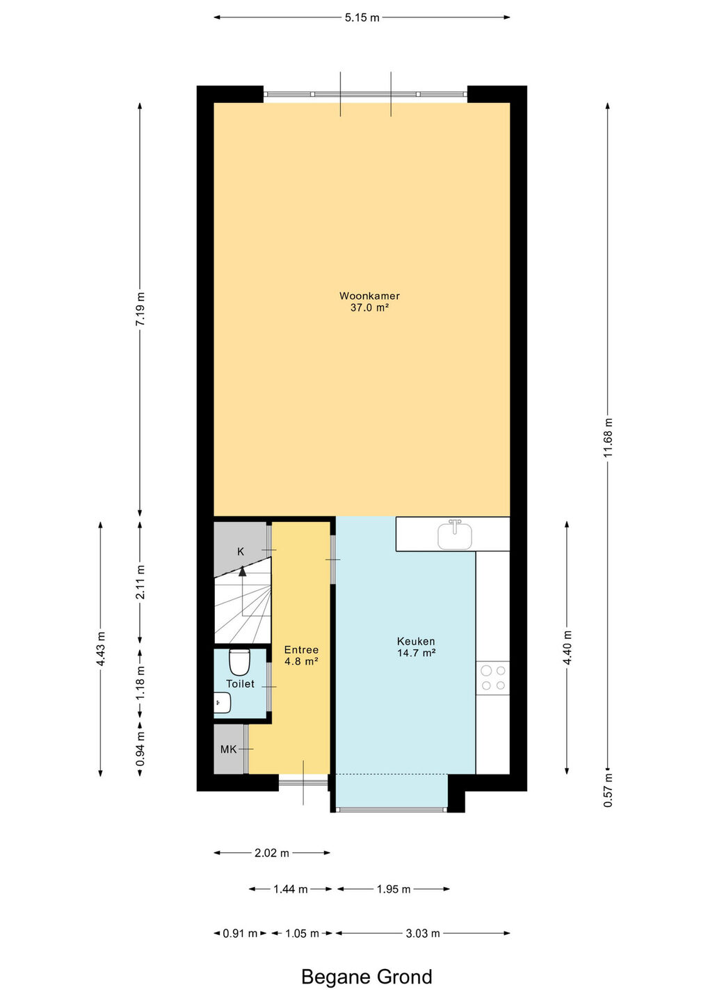 Bij binnenkomst word je verwelkomd in een lichte hal met de meterkast, een modern toilet met fontein, praktische bergruimte onder de trap en de trapopgang naar de verdieping.