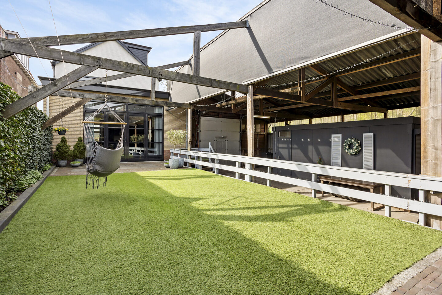 Aangrenzend bevindt zich de loods, die een enorme meerwaarde biedt. Hier is een aparte ruimte gerealiseerd die is ingericht als bijkeuken, compleet met witgoedaansluitingen, extra koel-/vriescombinatie, stoomoven en combimagnetron. Daarnaast is er een toilet en een boiler aanwezig. Deze ruimte biedt volop mogelijkheden voor hobby, werk of opslag en is ook nog voorzien van een achterdeur. Uiteraard ontbreekt ook de tuin niet, praktisch ingericht met kunstgras, waar het zomers heerlijk vertoeven is.