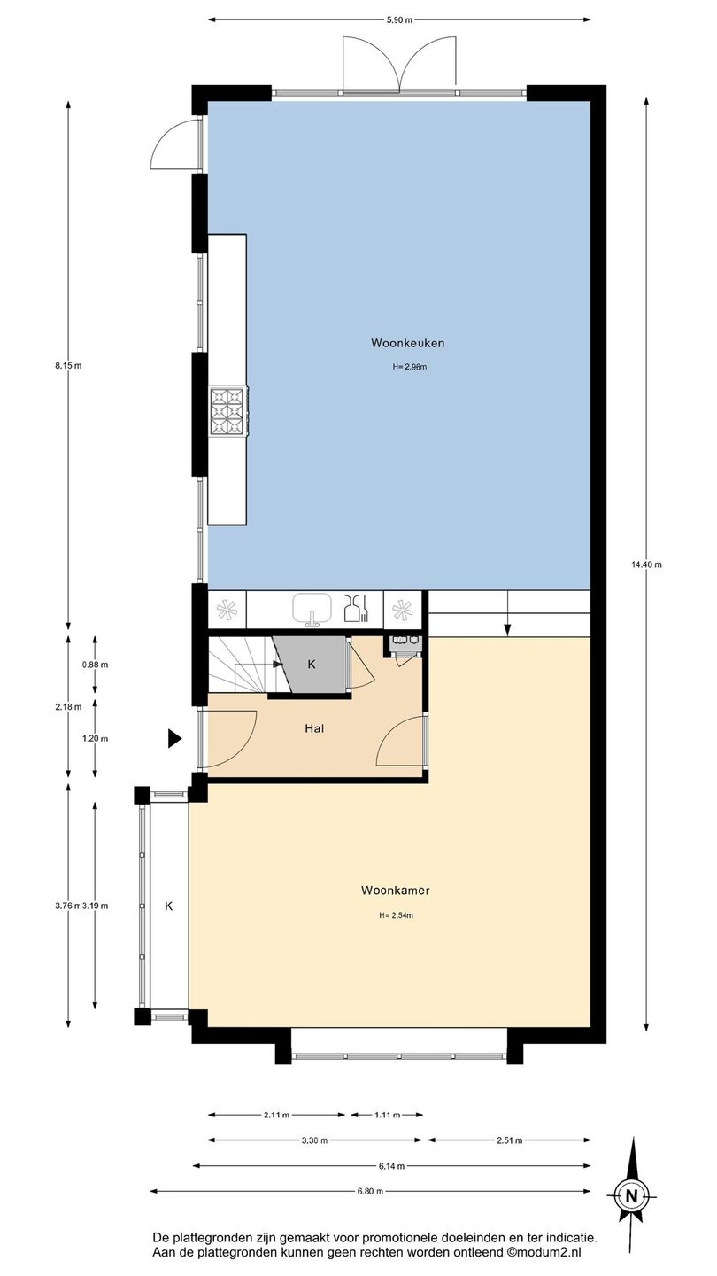Zie de (interactieve) plattegronden voor de afmetingen van de woning.
