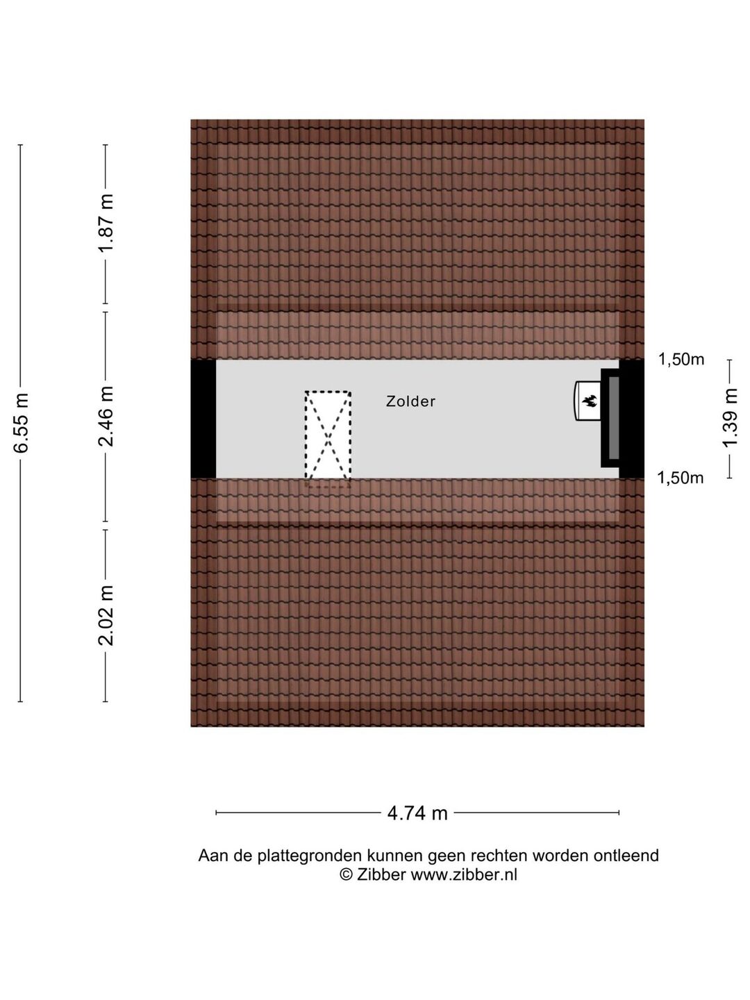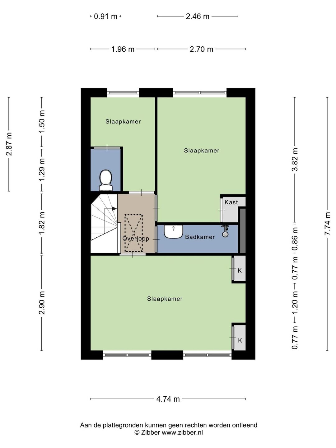 De tweede verdieping is te bereiken via een vlieringtrap die zich bevindt op de gang.