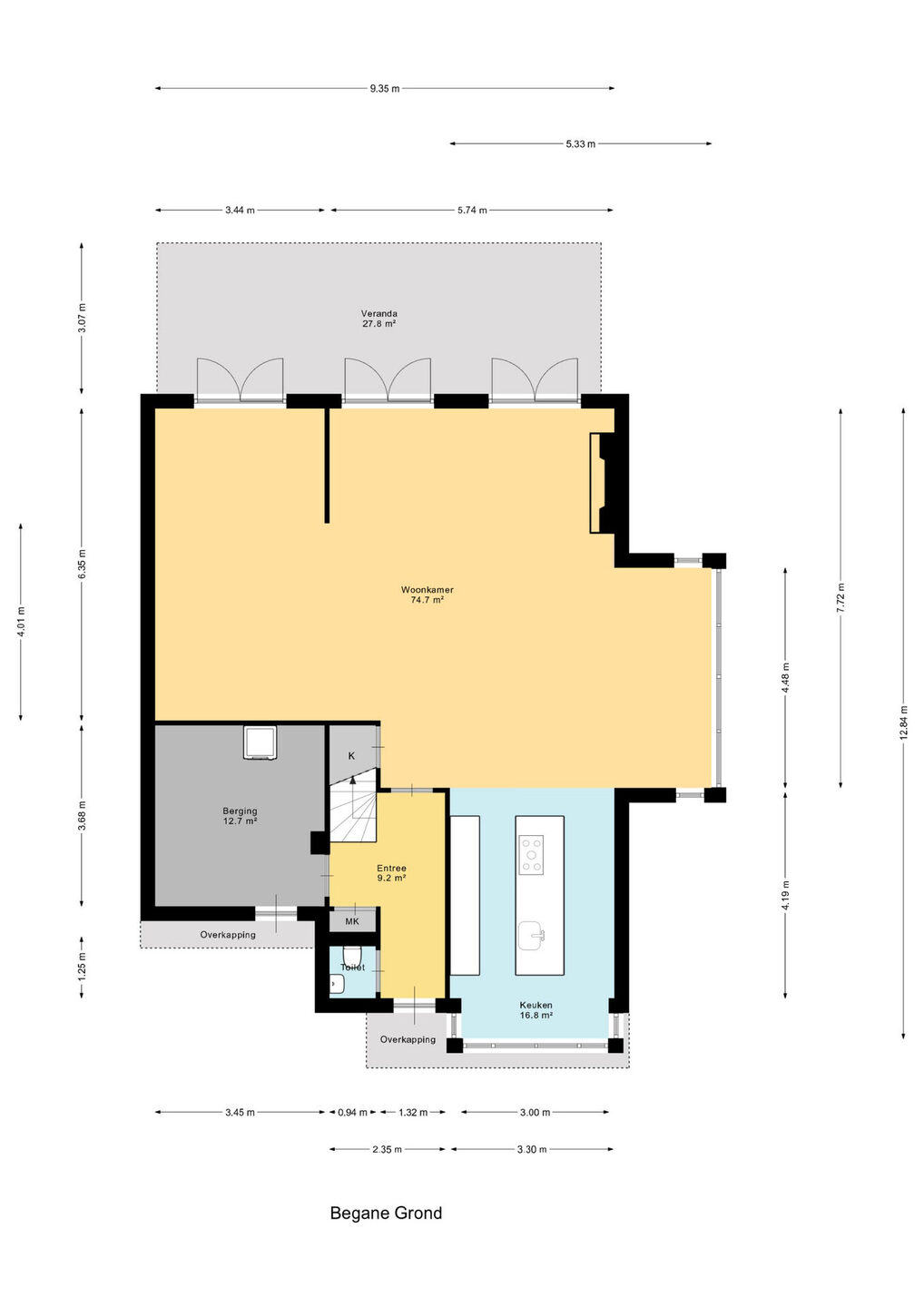 Middels de ruime entree kom je binnen in de woning. Hier bevindt zich de hal met toegang tot de berging (voorzien van wasmachineaansluiting), het moderne toilet met hangcloset en fonteintje, de meterkast en de trapopgang naar de eerste verdieping.