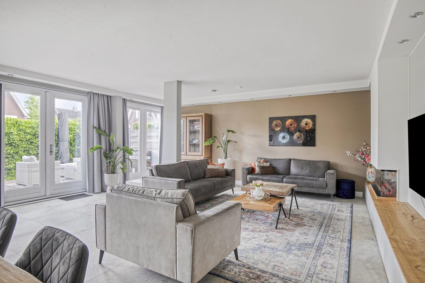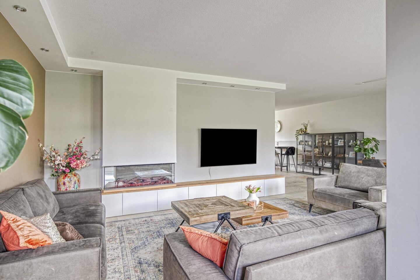 - Uitgebouwde woonkamer met elektrische haard en luxe afwerking