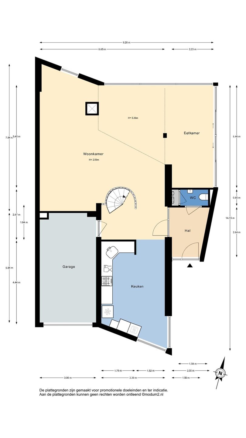 Zie de (interactieve) plattegronden voor de afmetingen van de woning.