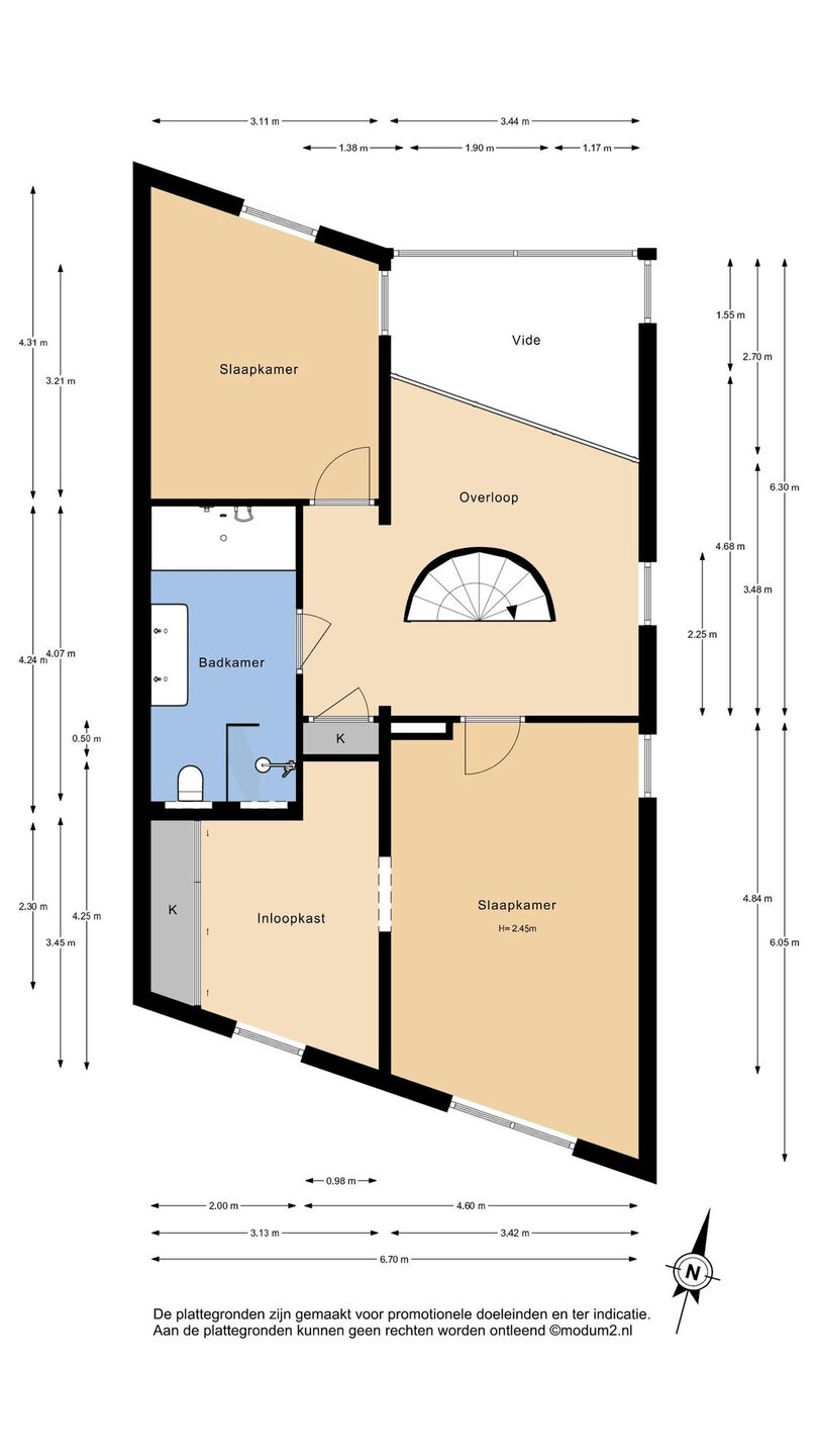 De slaapkamer is heerlijk ruim en beschikt over een inloopkast en airconditioning. Vanuit deze kamer heeft u via deuren toegang tot het royale dakterras aan zowel de voor- als achterzijde. Het dakterras loopt rondom de woning, waardoor u op elk moment van de dag een fijne plek in de zon kunt vinden.
