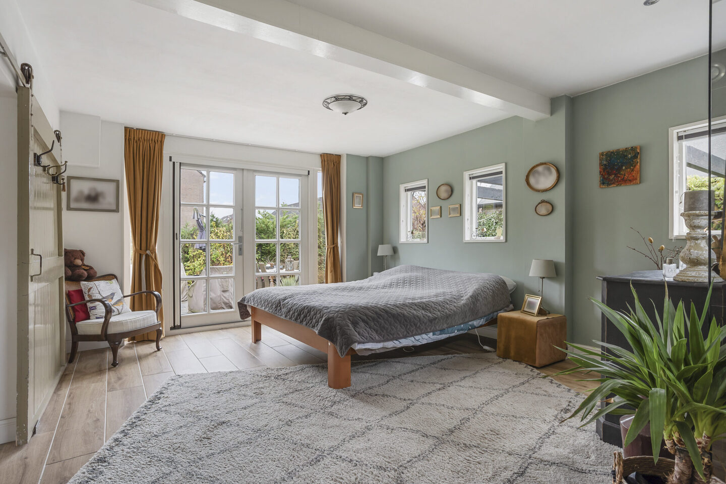 Achter de woning staat het verbouwde bijgebouw, wat door de aangebouwde hal is verbonden met de hoofdwoning en dat ongeveer 5,5 jaar geleden volledig is aangepakt. Op de begane grond ligt een tegelvloer met vloerverwarming. Er is een eigen toilet met fontein, een technische kast met de boiler en de pomp voor de vloerverwarming en een bijkeuken met wasmachineaansluiting. De schuifdeur geeft toegang tot de slaapkamer op de begane grond, waar dubbele deuren naar de tuin zorgen voor veel licht. De ensuite badkamer heeft een ruime inloopdouche en een meubel met twee waskommen. Op de verdieping van het bijgebouw bevindt zich nog een extra slaapkamer, ideaal als gastenverblijf of werkruimte.