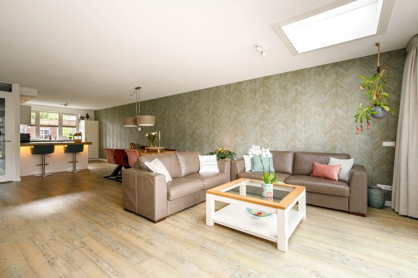 Via de nette voortuin stap je middels de voordeur binnen in de hal met meterkast, modern hangend toilet en trapopgang. Vanuit hier bereik je de royale, uitgebouwde woonkamer waar de openslaande deuren en lichtkoepels zorgen voor een heerlijke, lichte leefruimte. Een praktische trapkast biedt extra opbergruimte.