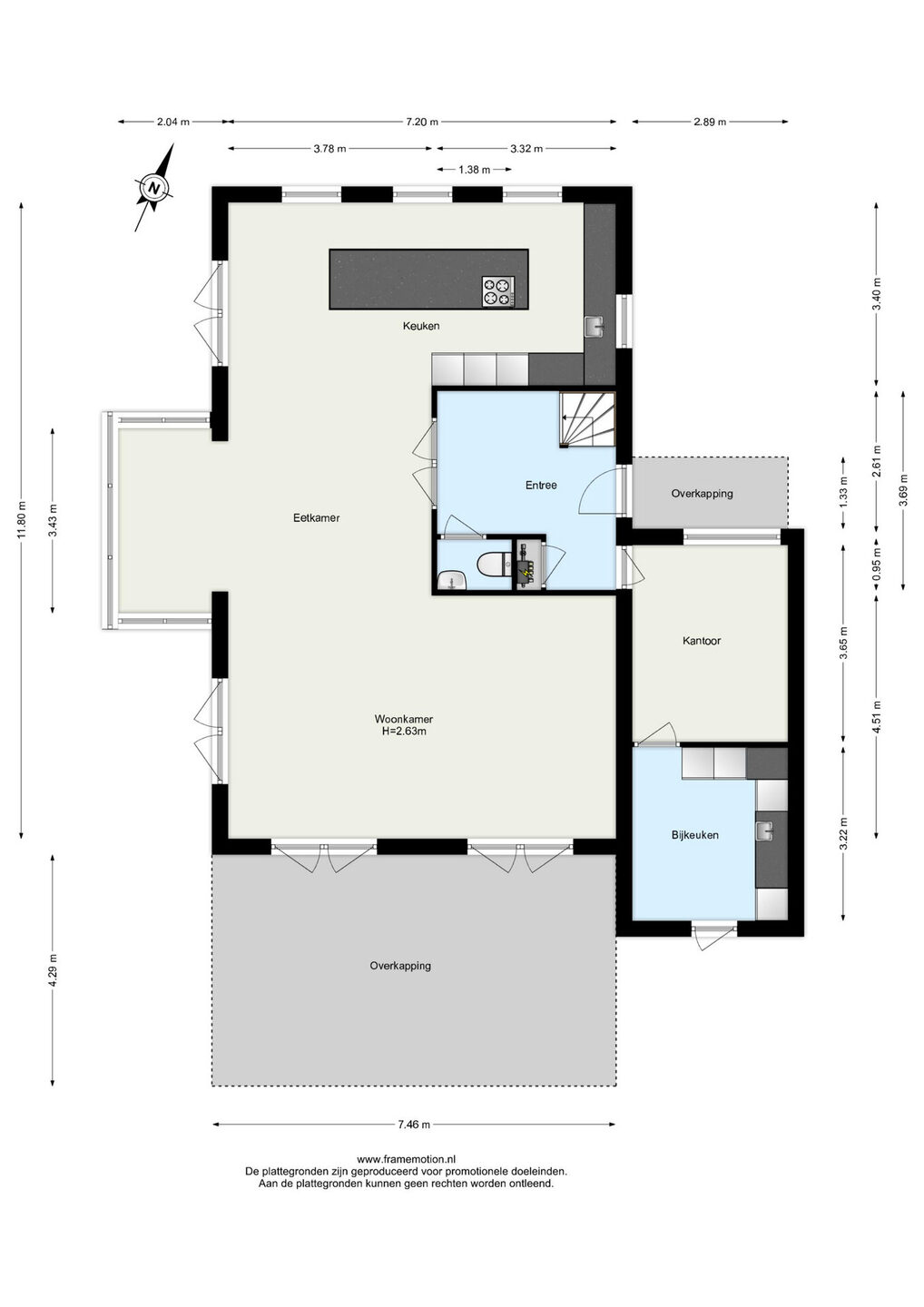 Zie de (interactieve) plattegronden voor de afmetingen van de woning.