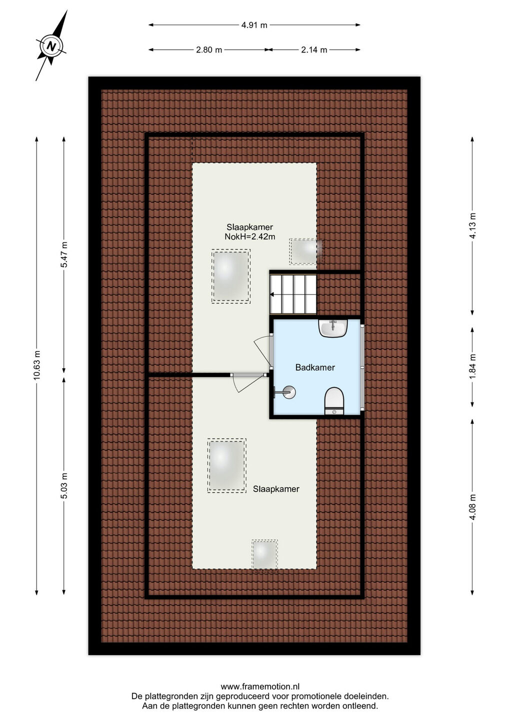 Op deze verdieping bevinden zich twee comfortabele slaapkamers, beide voorzien van daglicht via dakramen en geschikt als slaap-, werk- of logeerkamer. De moderne badkamer is praktisch en luxe ingericht met een douche, wastafelmeubel en hangend toilet. Dankzij de dakkapel is de ruimte aangenaam licht en ruim van opzet. De verdiepingen zijn afgewerkt met een laminaatvloer met vloerverwarming.