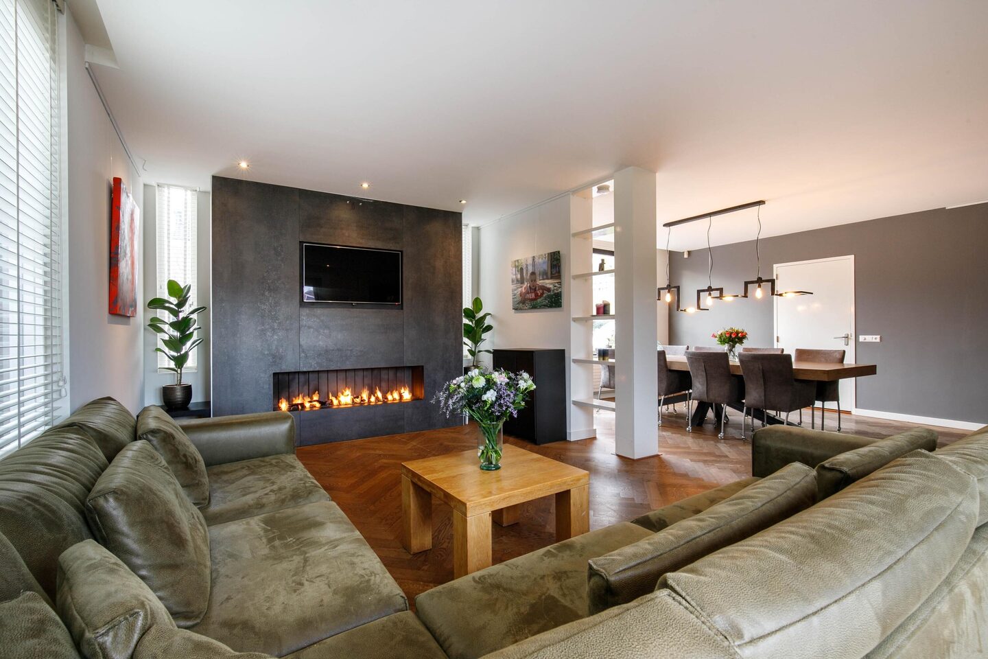 Vanuit de woonkamer is via dubbele deuren de achtertuin te bereiken. De woonkamer is voorzien van een eiken visgraatvloer en de gashaard zorgt voor voor gezelligheid en sfeer.