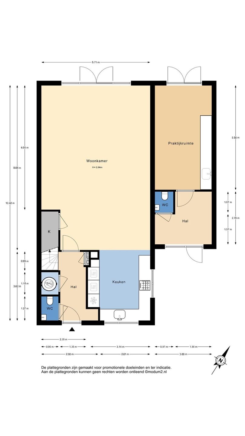 De volwaardige praktijkruimte is vanuit de nieuwbouw gerealiseerd en samen met de woonkamer 2,4 meter uitgebouwd aan de achterzijde. De praktijkruimte beschikt over een eigen entree, wachtruimte, toilet en keuken. Deze ruimte is uitstekend geïsoleerd (gevel, dak en vloer), voorzien van vloerverwarming en -koeling met aparte regeling en uitgevoerd met hardhouten kozijnen en triple glas. Een perfecte combinatie van wonen en werken, zonder concessies te doen aan comfort of uitstraling.