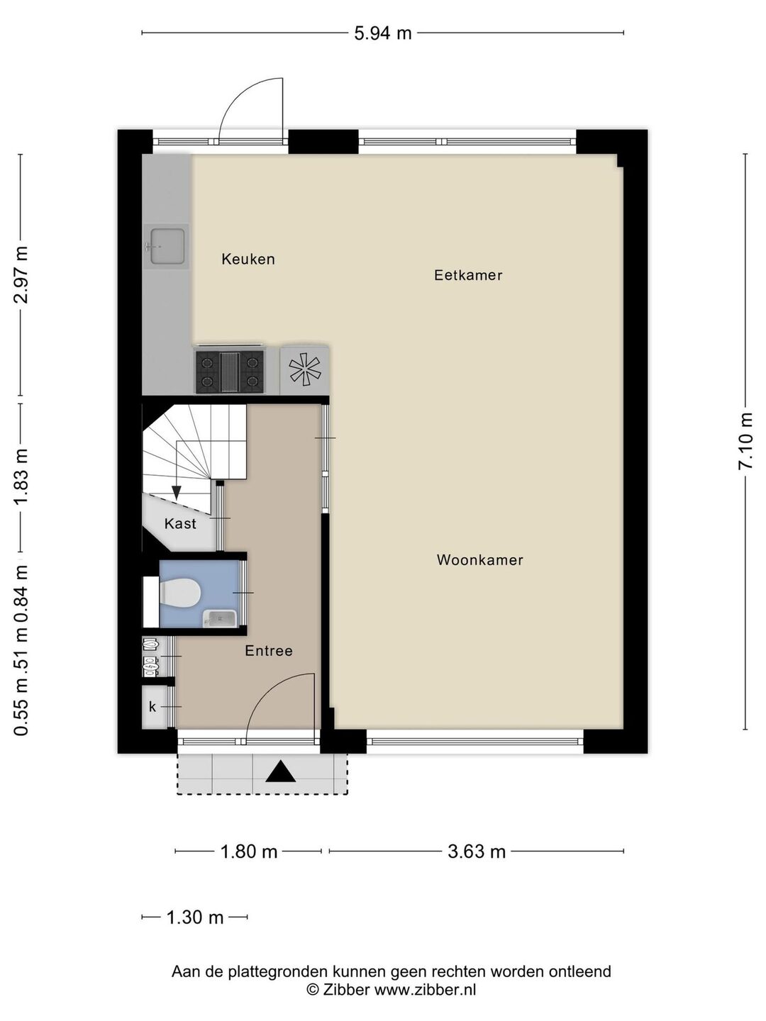 Entree, hal met de meterkast (2017), het toilet (2020, met zwevend toilet en fonteintje), een kast onder de trap en de trap naar de eerste verdieping.