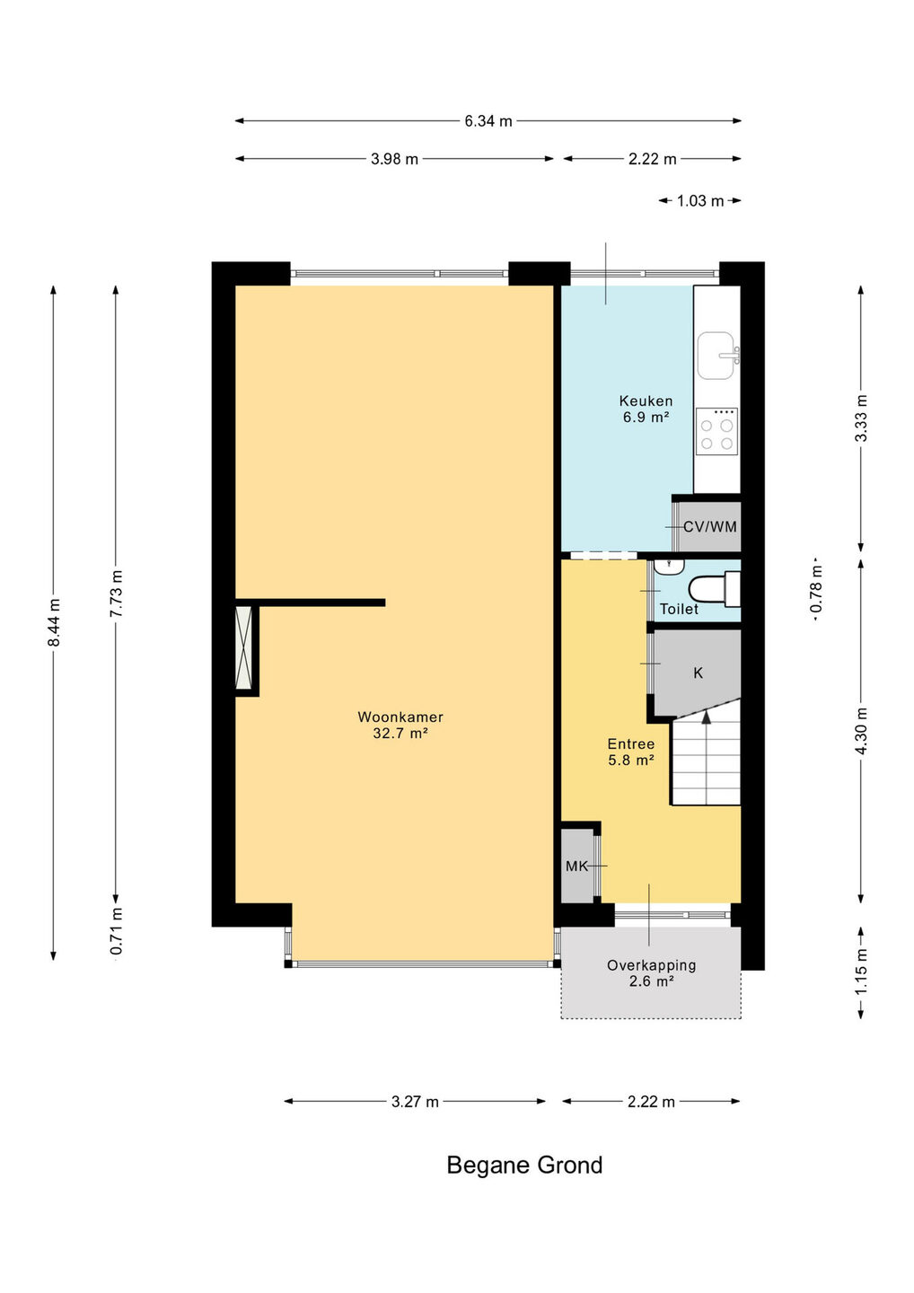 Zie de (interactieve) plattegronden voor de afmetingen van de woning.