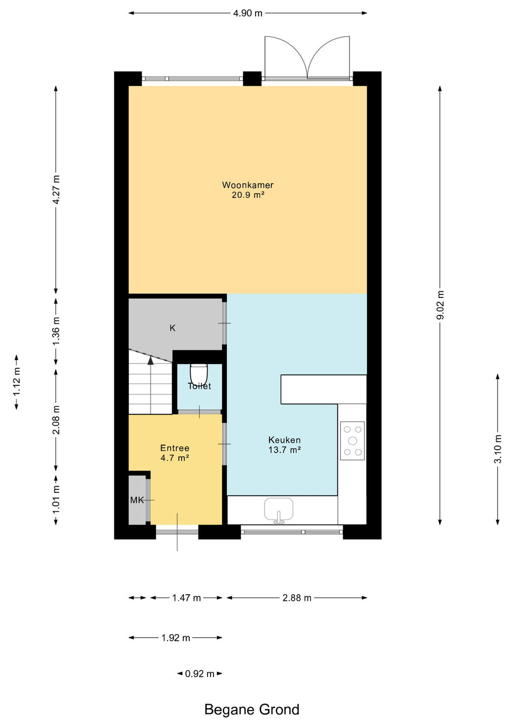 Zie de (interactieve) plattegronden voor de afmetingen van de woning.