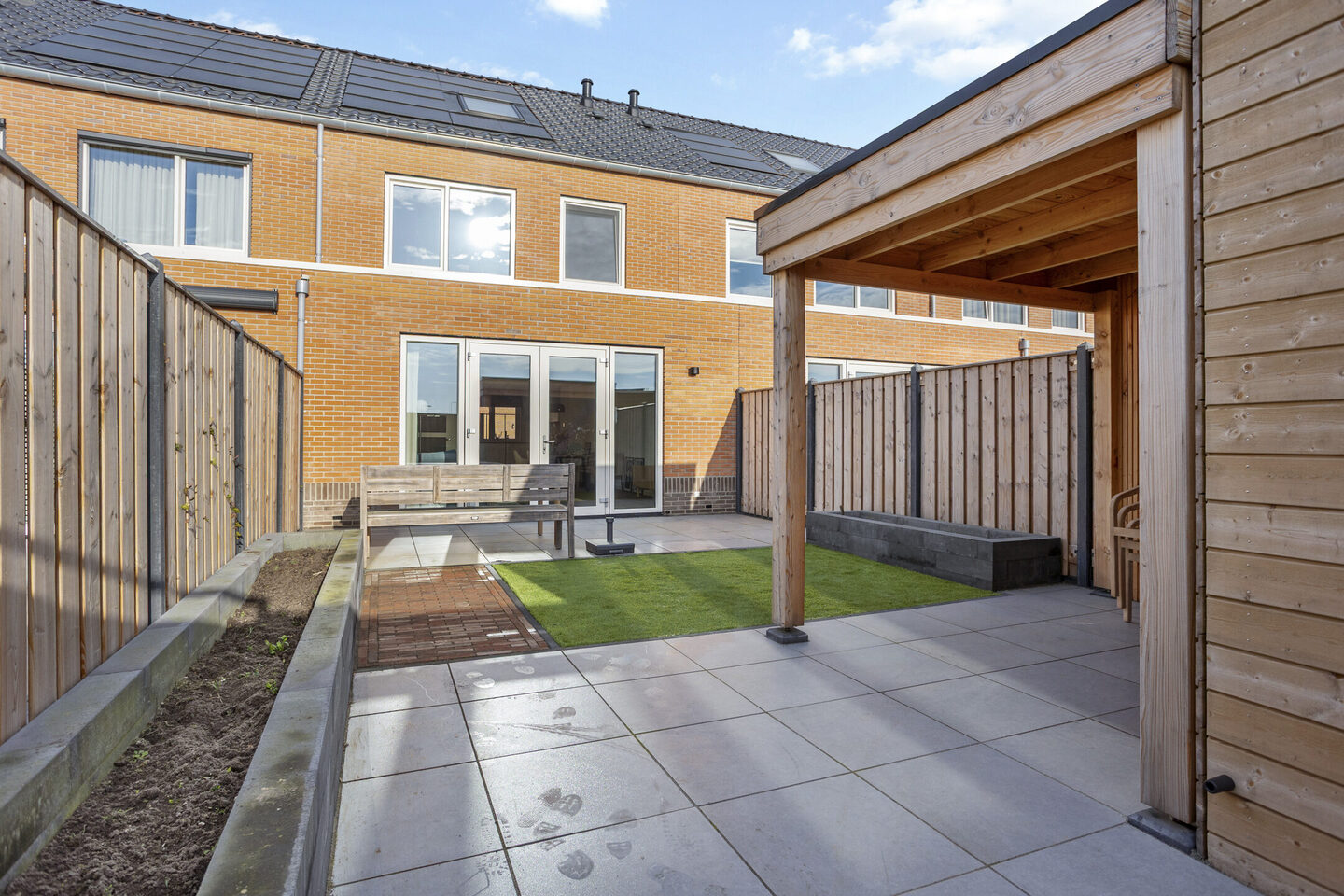 De zonnige achtertuin, gelegen op het zuiden, is netjes aangelegd en biedt volop mogelijkheden om van het buitenleven te genieten. De tuin beschikt over een overkapping, een praktische berging en een achterom. Aan de achterzijde grenst de tuin aan een rietslootje dat door de bewoners wordt onderhouden.