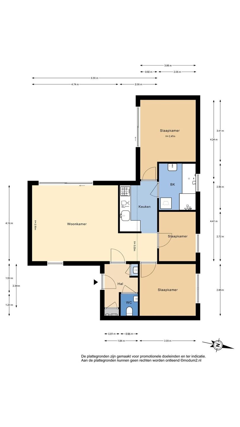 Zie de (interactieve) plattegronden voor de afmetingen van de woning.