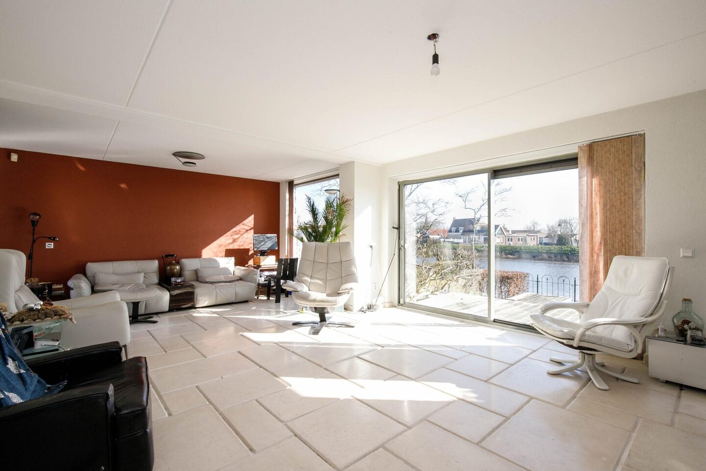 De ruime woonverdieping beschikt over een zitgedeelte aan de achterzijde welke is voorzien van grote raampartijen die uitzicht bieden over de tuin en de Hollandsche IJssel. Aan de voorzijde van de woning bevindt zich een eetgedeelte en de open keuken welke is opgesteld in een hoekopstelling. De keuken is voorzien van diverse inbouwapparatuur, zoals een 4-pits keramische kookplaat, een afzuigkap, een combimagnetron en een koel/vriescombinatie.