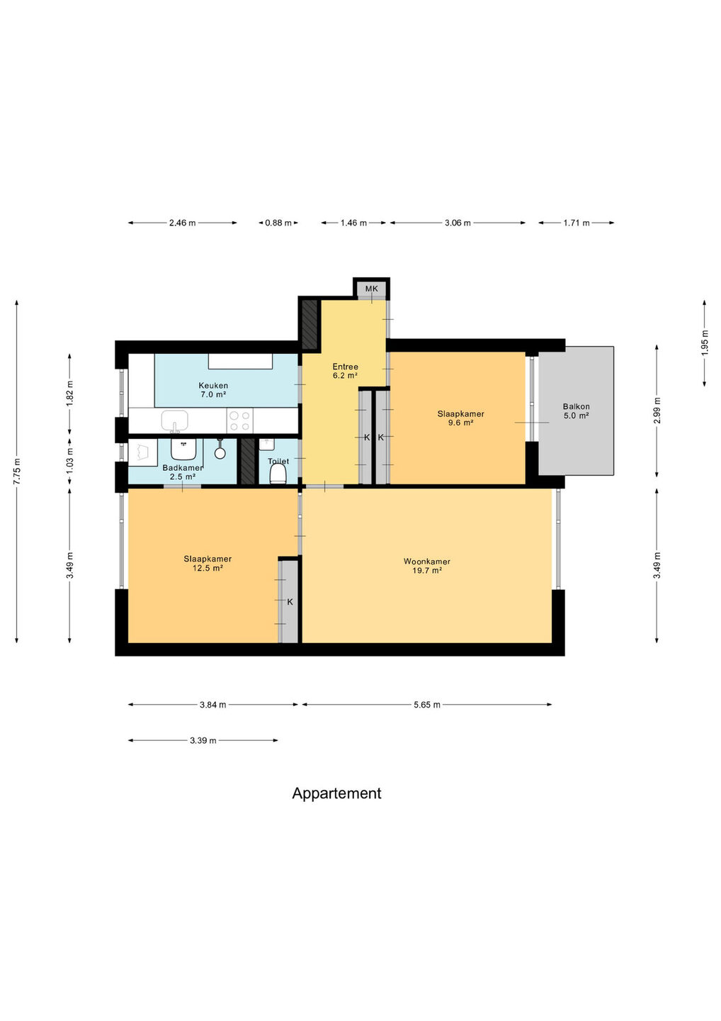 Zie de (interactieve) plattegronden voor de afmetingen van de woning.