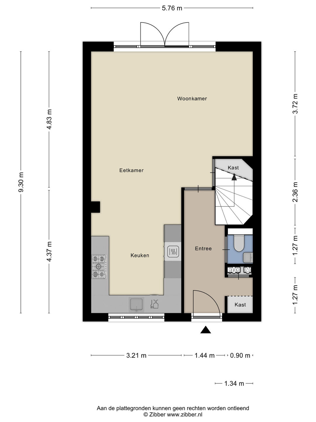 Zie de (interactieve) plattegronden voor de afmetingen van de woning.