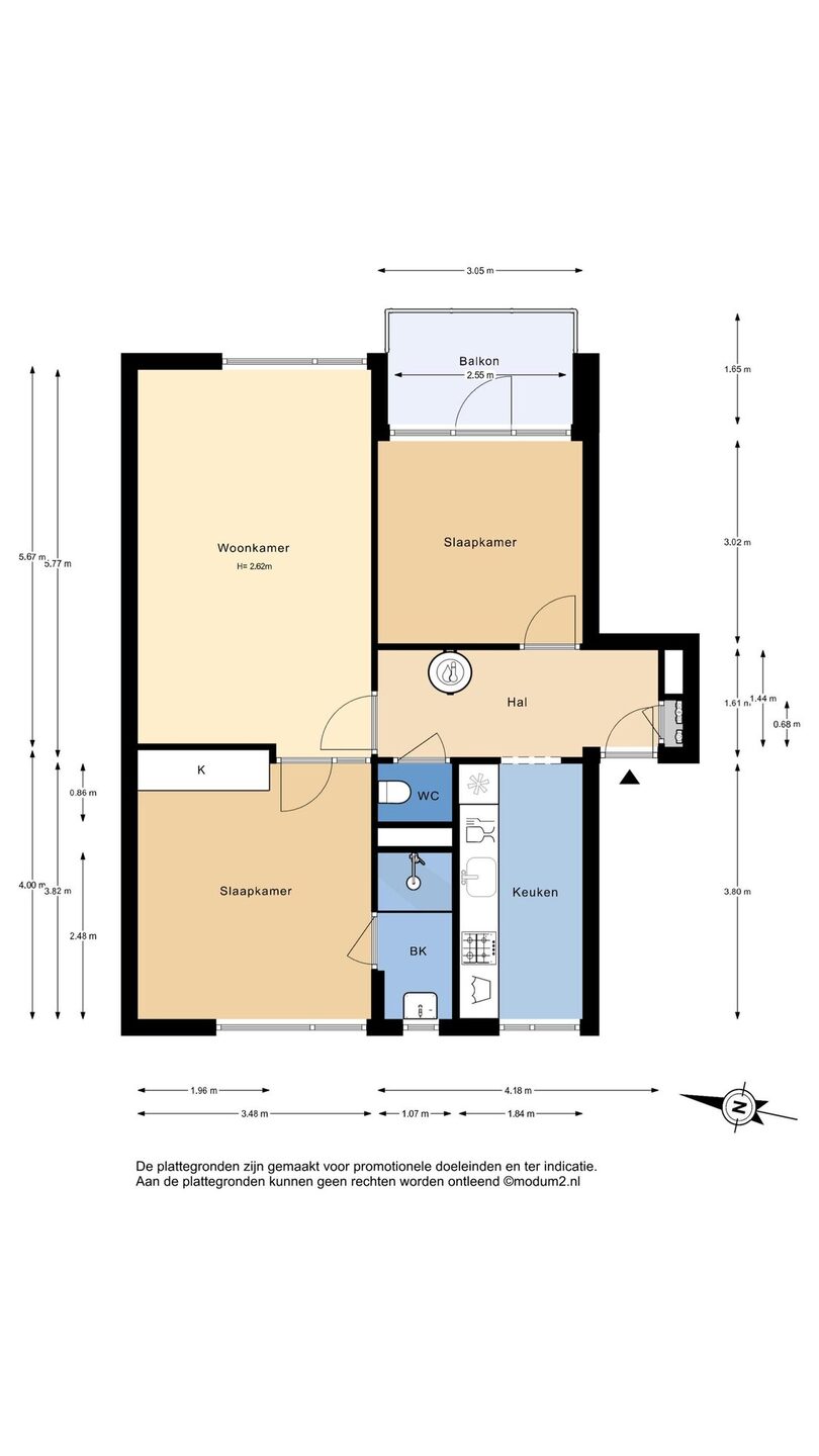Zie de (interactieve) plattegronden voor de afmetingen van de woning.