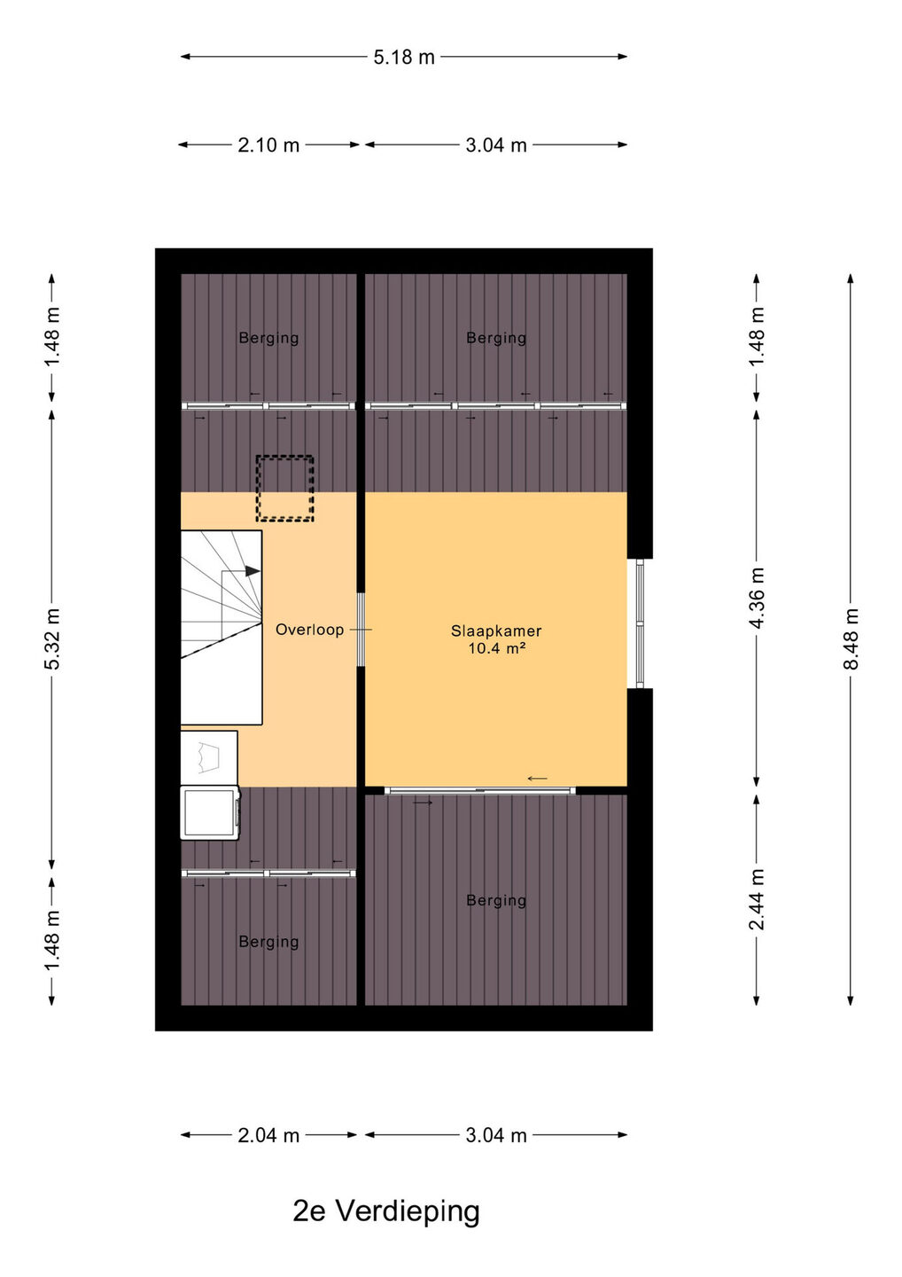 Overloop met dakraam, wasmachine-aansluiting, mechanische ventilatie en cv-installatie (2022). De vierde slaapkamer is voorzien van een zijraam, veel opbergruimte achter de knieschotten en biedt toegang tot de vliering boven de overloop, ideaal voor extra bergruimte.