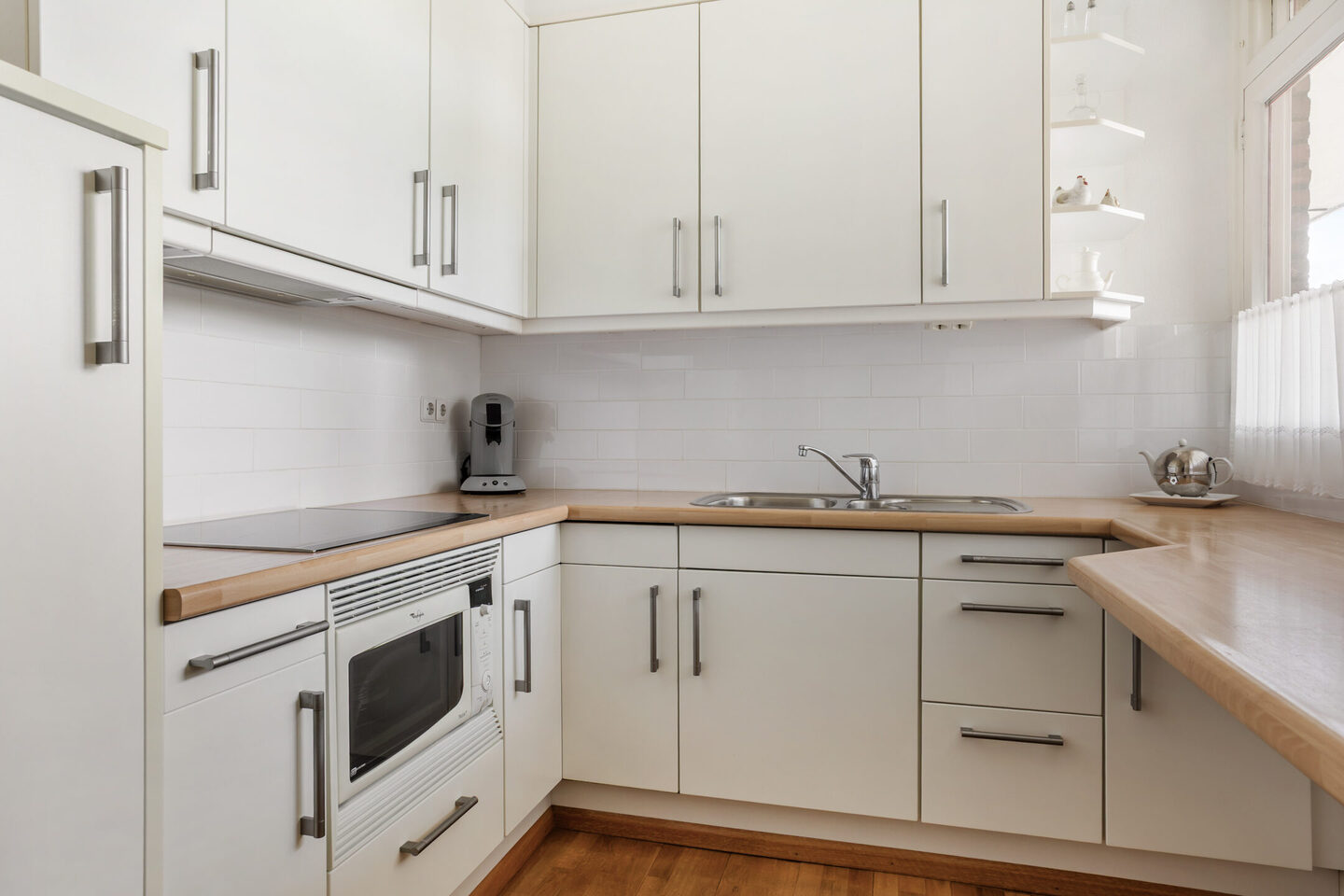 De keuken is van alle gemakken voorzien. Er is een inductiekookplaat met afzuigkap, een combi-oven en een koel-vriescombinatie (2024). Daarnaast is er voldoende opbergruimte in de kastjes en een lang werkblad met zitruimte.