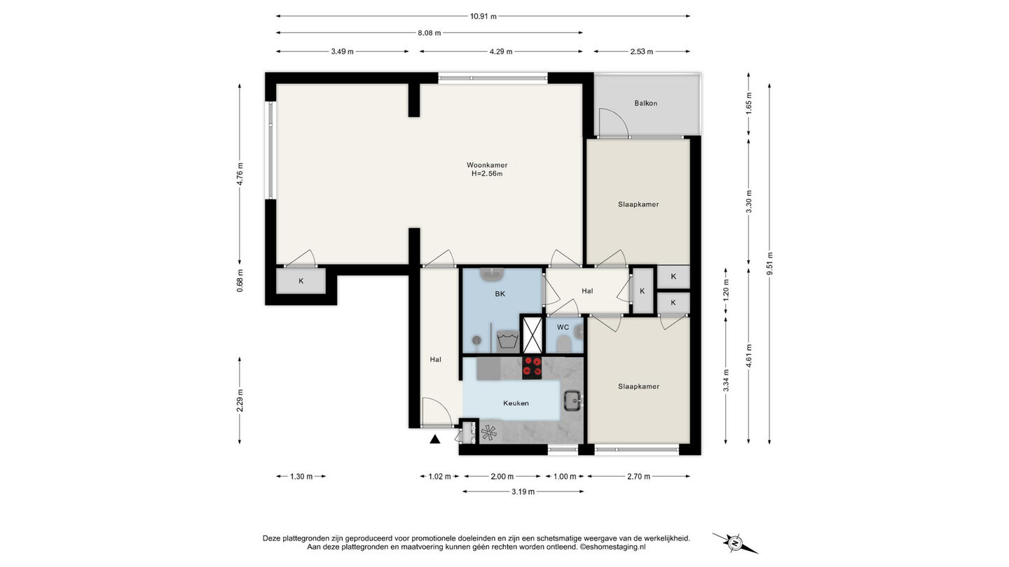 Zie de (interactieve) plattegronden voor de afmetingen van de woning.