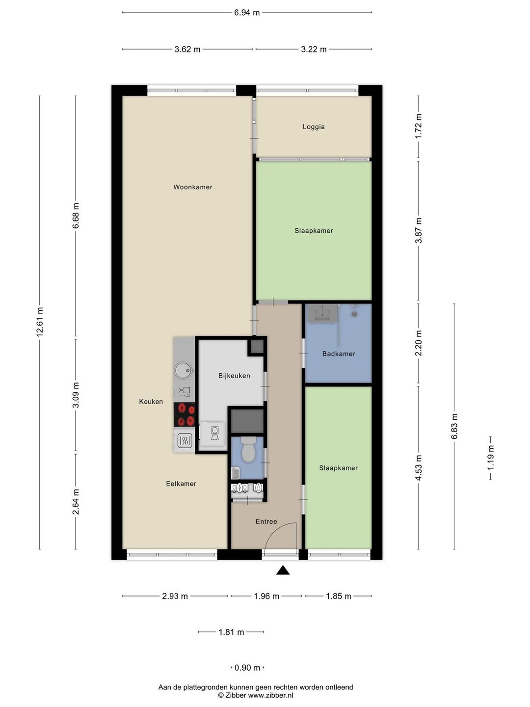 Zie de (interactieve) plattegronden voor de afmetingen van de woning.