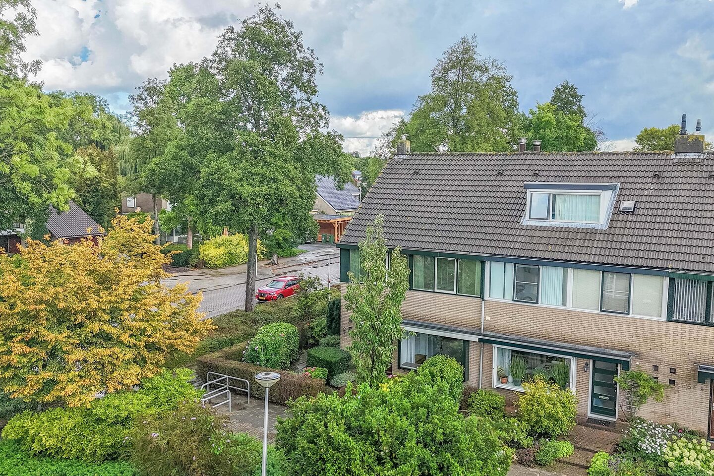 Via de voortuin met zij-om is de voordeur te bereiken.