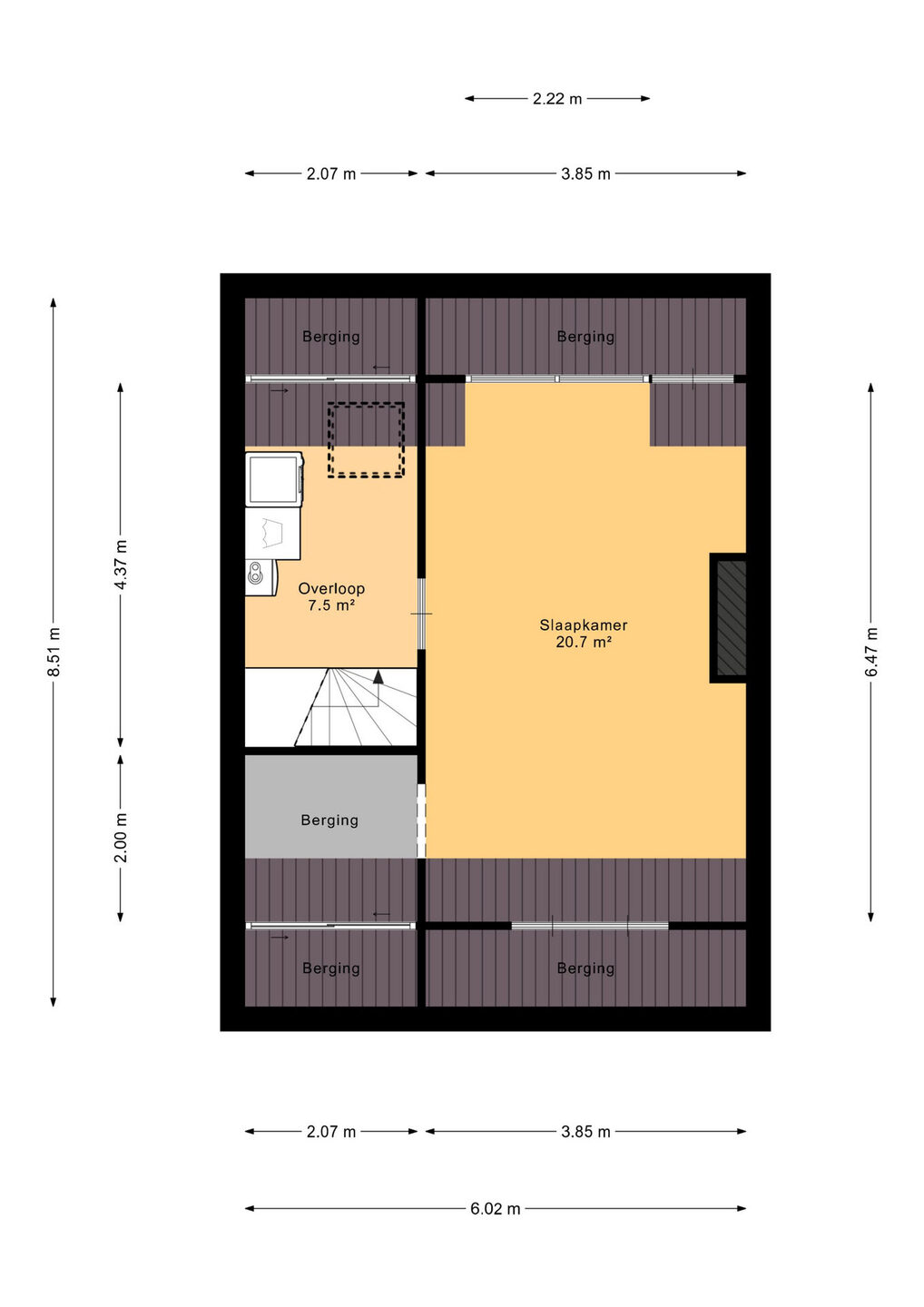 Overloop met aansluiting voor de wasmachine en droger, Cv-installatie (2024) en bergruimte achter de knieschotten. Dankzij het dakraam heb je hier veel daglicht. Via de overloop is de vierde ruime slaapkamer te bereiken. Deze slaapkamer beschikt over een dakkapel waardoor je hier extra geniet je van extra licht en leefruimte, ideaal als slaapkamer, werkkamer of hobbyruimte. Bovendien vindt je hier een extra ruime berging, die tevens gebruikt kan worden als een walk in-closet.